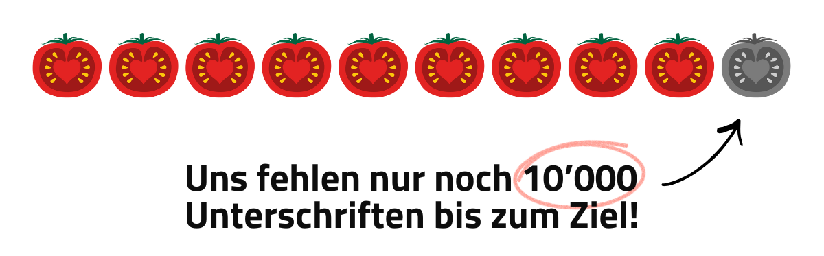 Wir sind fast am Ziel!🌱 Nur noch 10’000 Unterschriften fehlen der Lebensmittelschutz-Initiative für die Einreichung! Wenn du noch nicht unterschrieben hast, dann bestelle dir gleich jetzt einen Unterschriftenbogen und hol es nach! Hilf mit, die Schweiz vor den Risiken der Gentechnik zu schützen - jede Unterschrift zählt! 💛